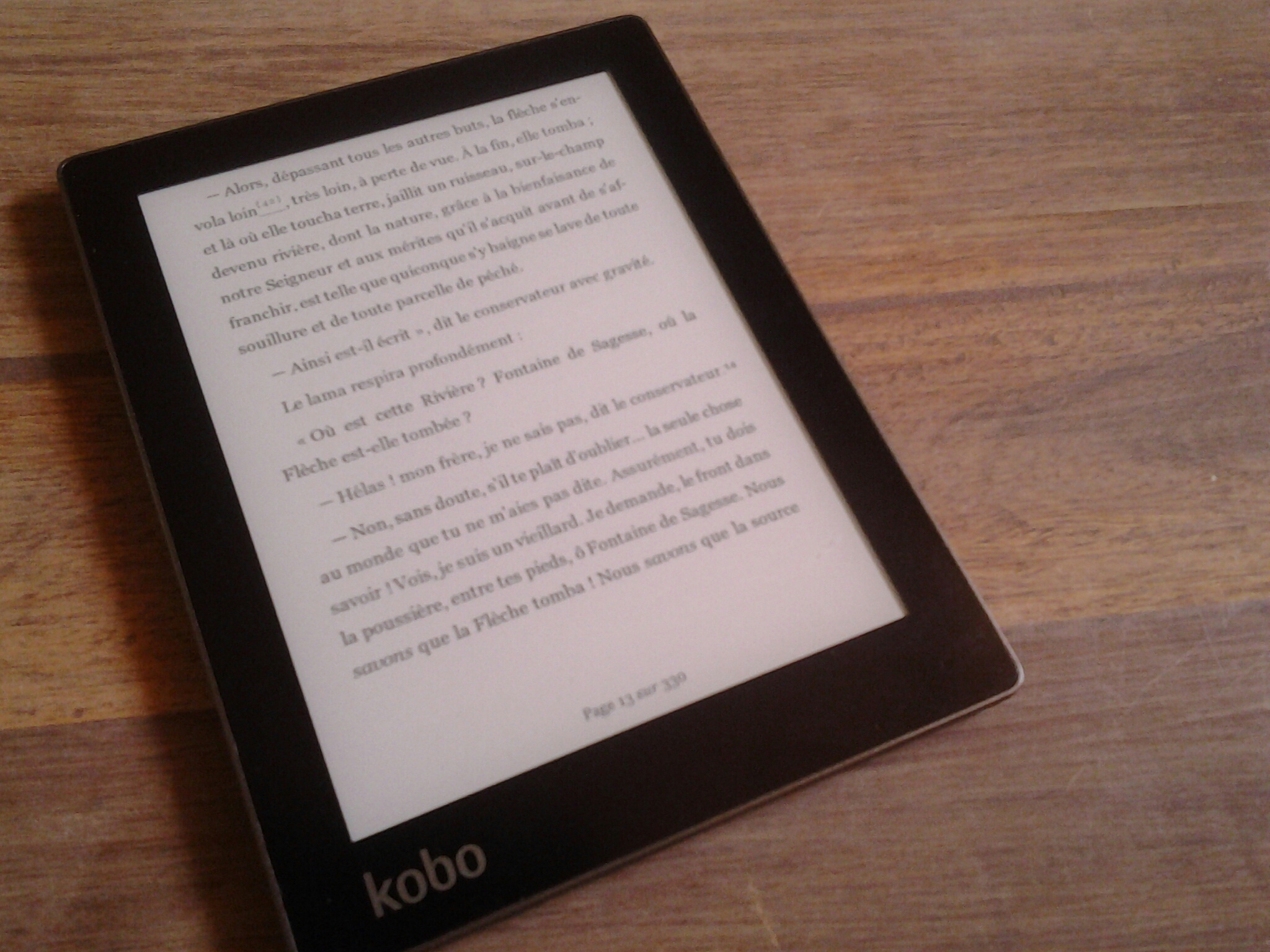 Sept. 2015. En voyage, je trimballe souvent avec moi plusieurs livres, ce qui ajoute un poids conséquent dans mon sac à dos, sans compter le volume perdu. J’entends parler des liseuses depuis quelques années, mais, n’en ayant jamais vu, j’étais quelque peu sceptique sur le plaisir de lire sur un écran. J’avais déjà essayé de lire sur tablette mais j’avais vite laissé tomber, autant pour des raisons de confort de lecture que pour le problème de l’autonomie de l’appareil.