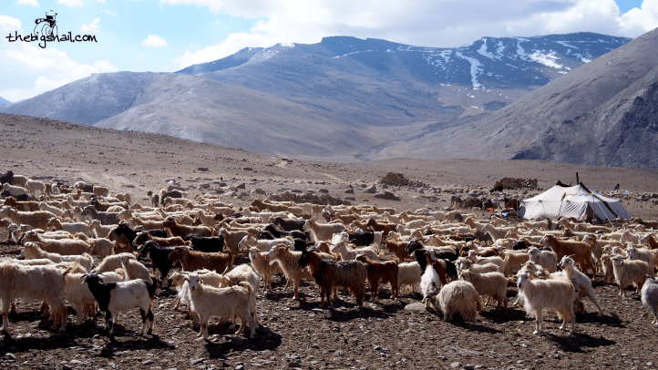 Il est 5h30 quand je me réveille, dans un silence seulement perturbé par le bêlement des chèvres. Il ne fait que 3 degrés à l’intérieur de la tente, mais ce n’est finalement pas si mal quand on considère que je me trouve à près de 4700 mètres d’altitude. Je suis seul avec le chura, le fromage qui est en train de sécher sur des sacs d’orge. Stobdan, lui, est déjà levé, en train de peigner ses chèvres avec son gendre pour recueillir leur précieux duvet rendu célèbre par les châles du Cachemire. Les moutons sont encore tranquilles pour l’instant, mais le moment de leur tonte arrivera bien vite.