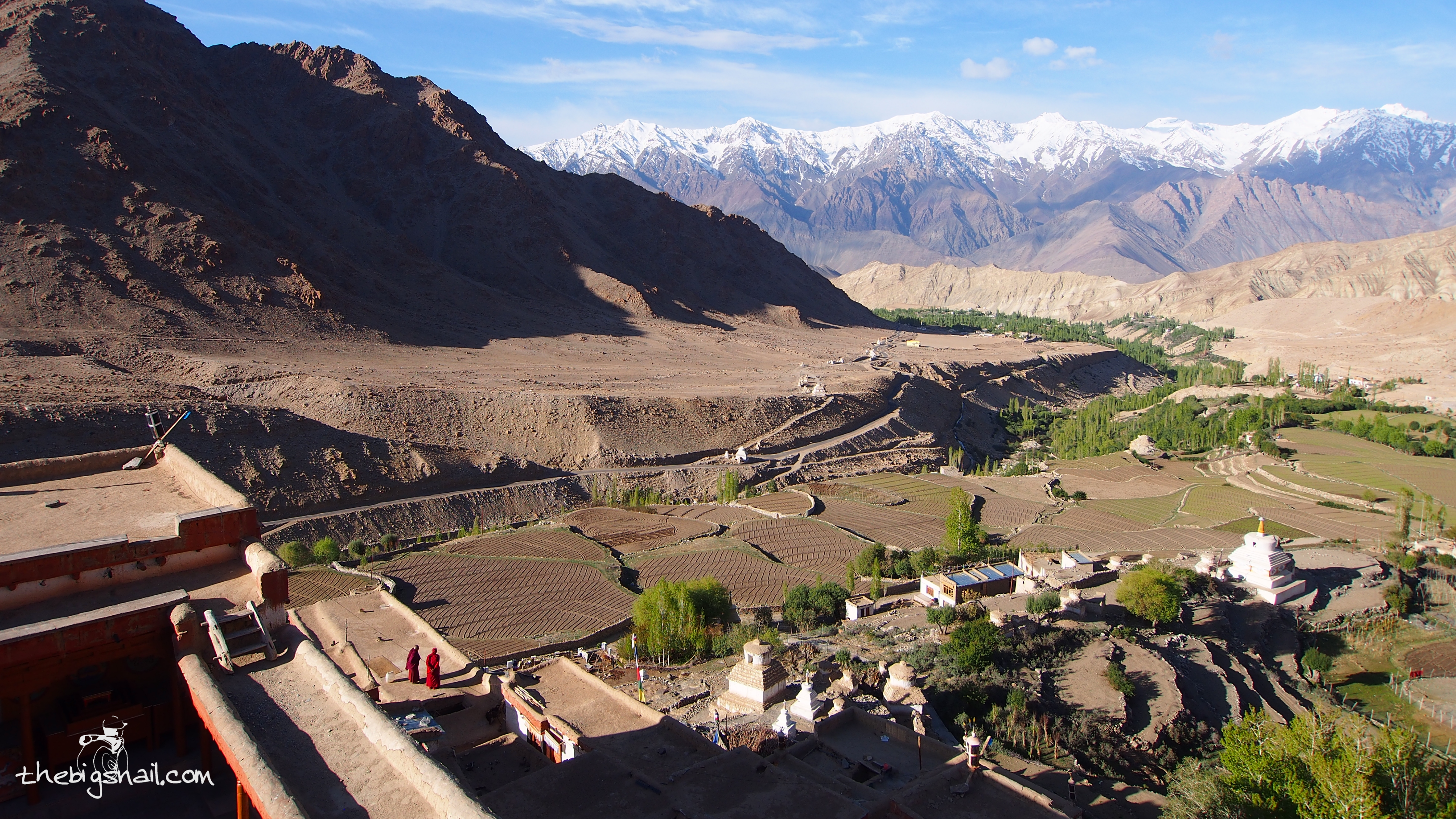 Tout en buvant ma boisson chaude, j’expliquais au gelong la raison de ma venue. Celui-ci affirma que c’était mon karma qui m’avait envoyé ici. Mais alors que je souhaitais avoir un aperçu de la vie monastique, c’est la vie dans le labrang, la cuisine du monastère, que j’allais découvrir. Le monastère possédait des champs qu’il fallait cultiver, mais les moines ne pouvant le faire eux-mêmes, il fallait trouver des bras dans le village, et pourquoi pas, des volontaires étrangers. Ce n’était pas ce que j’avais imaginé en arrivant ici, mais je décidai d’accepter. Deux jours après mon arrivée au Ladakh, je me retrouvais donc à travailler dans des champs perchés à 3800m d’altitude. Pour s’habituer à l’altitude, on a vu meilleure méthode !