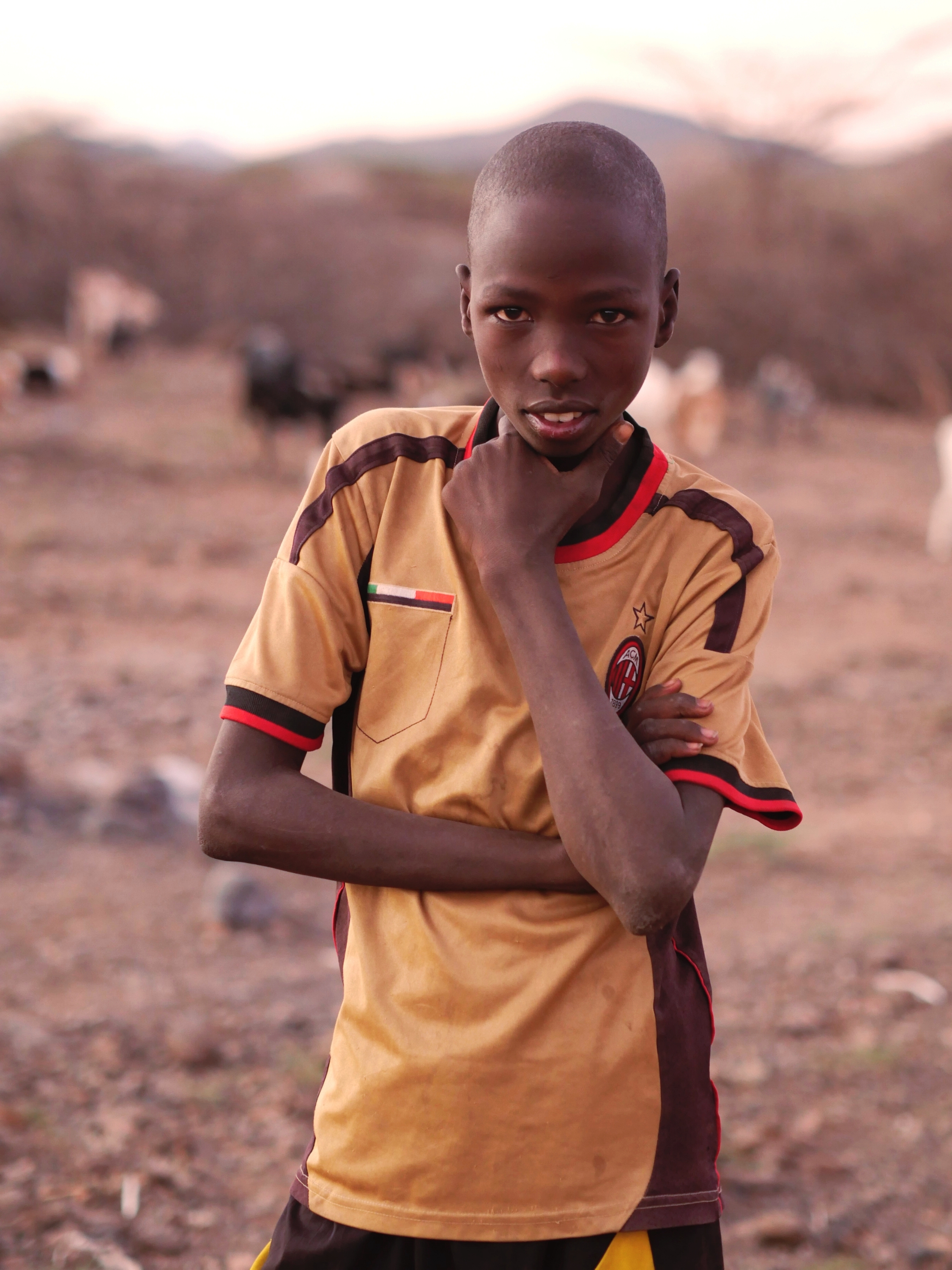 C’est en allant à la rivière que j’ai rencontré Akadeli. Akadeli est la féminisation du nom d’un arbre courant au Turkana qu’ils appellent ekadeli (commiphora africana). Il n’est en effet pas rare que les Turkanas portent des noms de plantes ou d’animaux. Akadeli était une jeune fille d’environ 12 ans, qui quittait le village en même temps que moi un petit paquet de sucre dans les mains. Elle avait la tenue, les colliers et la coiffure typiques des Turkanas. Elle avait aussi de petites scarifications sur le front indiquant le clan auquel elle appartenait. Elle vivait chez une famille à l’extérieur du village, de l’autre côté de la rivière. Elle effectuait quelques tâches en échange du logement, de la nourriture et sans doute un peu d’argent de poche. Ses parents, des éleveurs, l’avaient confiée à cette famille appartenant vraisemblablement au même clan qu’eux car ils étaient trop pauvres pour s’en occuper.
