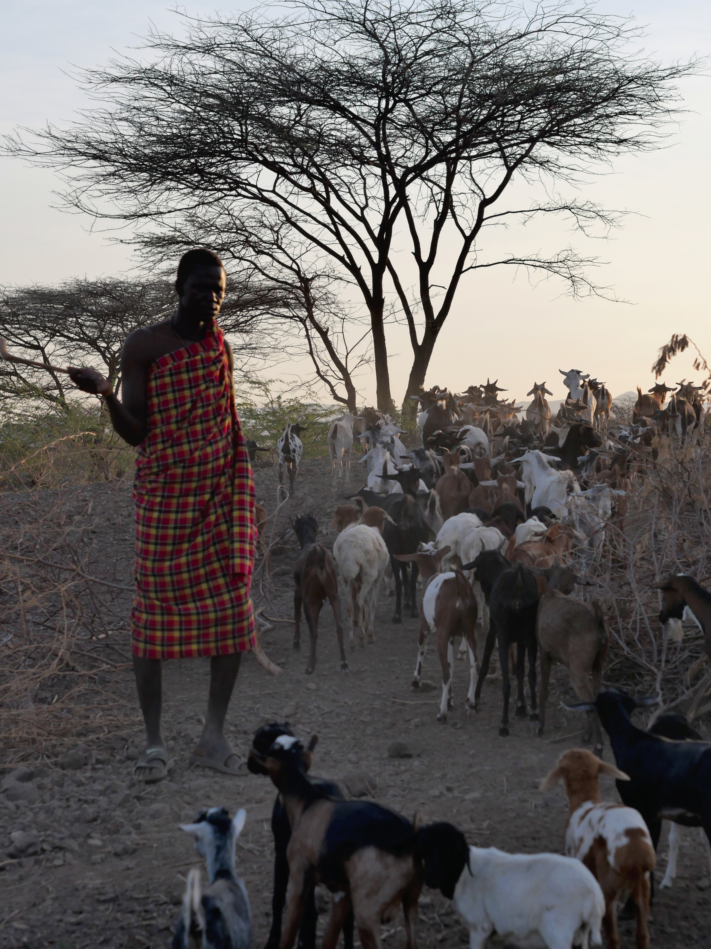 Le lendemain je me réveillai tout naturellement avec le lever du soleil. Rapidement tout le monde était occupé avec les chèvres : il fallait faire sortir les chevreaux pour qu’ils puissent se nourrir auprès de leur mère avant de les rentrer dans une hutte et de faire partir le troupeau. Après une grande tasse de chai, le temps était déjà venu pour moi de quitter Moses, et, bientôt, de quitter Kaaling.