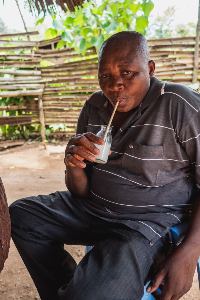Je montai donc dans un matatu et arrivai rapidement dans un village à proximité du kaya Kambe. Un jeune homme m’aida aussitôt à trouver un mzee du nom d’Albert, mais celui-ci me fit aussitôt comprendre que ce n’était pas la peine d’aller dans le kaya. D’une part, il n’y avait rien à voir dans la forêt en dehors des moments de prières. Et d’autre part, cela me coûterait très cher : une chèvre, un poulet et de l’argent pour l’assemblée des wazee, soit 15000 ksh au total, environ 100 euros. Je me contentai donc d’offrir une bouteille de mnazi (vin de palme) à Albert pour 130 ksh et de lui poser quelques questions.